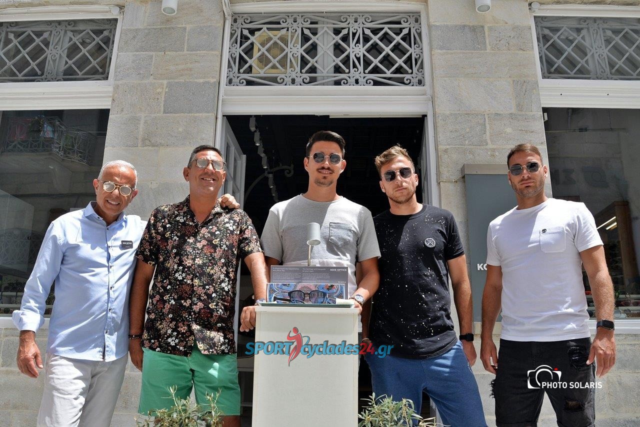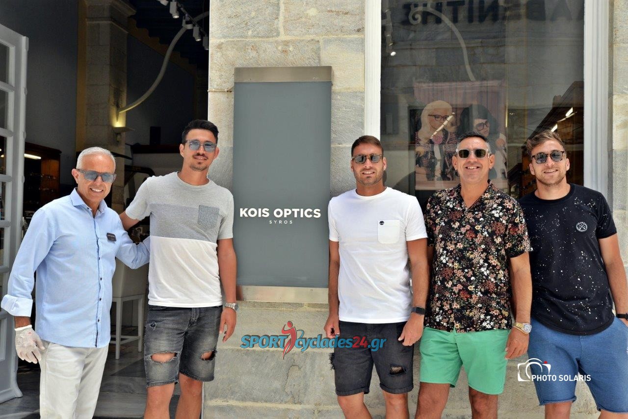 Στα πλαίσια της χορηγικής συνεργασίας μεταξύ του Α.Ο Σύρου και του καταστήματος Οπτικών Κοής ο ιδιοκτήτης του Σταύρος Κοής παρέδωσε στους ποδοσφαιριστές Παναγιώτη Ραμπαβίλα , Γιάννη Συμιγδαλά και Δημήτρη Λούσα καθώς επίσης και στον Πρόεδρο Γιώργο Φώσκολο από ένα ζευγάρι γυαλιά ηλίου της εταιρείας Thome Browne που είναι χορηγός της Μπαρτσελώνα. Παράλληλα δοκίμασαν και φωτογραφήθηκαν με γυαλιά ηλίου νέας παραλαβής άλλων εταιρειών που είναι στη διάθεση των πελατών. Το καλοκαίρι ήλθε φουριόζικο και τα γυαλιά ηλίου είναι το απαραίτητο αξεσουάρ που προστατεύουν τα μάτια από τον δυνατό ήλιο που φέτος φαίνεται ότι θα μας βασανίσει…..