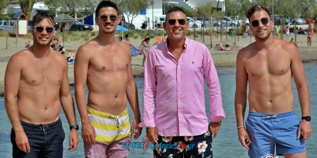 Ο πρόεδρος και οι ποδοσφαιριστές με τα καινούργια τους γυαλιά φωτογραφήθηκαν στο ΟΝΟ στο οποίο γίνονται εντατικές εργασίες προκειμένου προσαρμοσμένο στις απαιτήσεις των καιρών…..και πανέτοιμο να λειτουργήσει το συντομότερο δυνατόν στην πιο κοσμοπολίτικη παραλία της Σύρου, τις Αγκαθωπές.