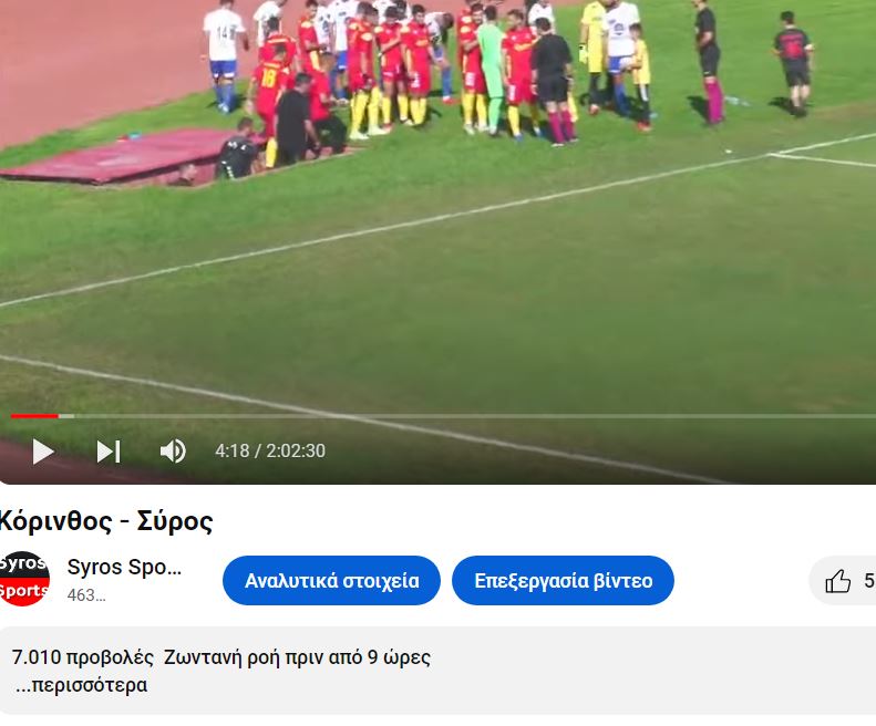 Σε επόμενη ανάρτηση θα δείτε τις καλύτερες στιγμές του αγώνα που μεταδόθηκε ζωντανά σε προσφορά της διοίκησης της Ελλάς Σύρου και των χορηγών της, σε μια μετάδοση που όπως βλέπετε παρακάτω ξεπέρασε τις 7000 προβολές από τα σάιτ που μεταδόθηκε (Sportcyclades, Syros-Sports, Cyclades24, Ellas-syrou,  Logotypos)