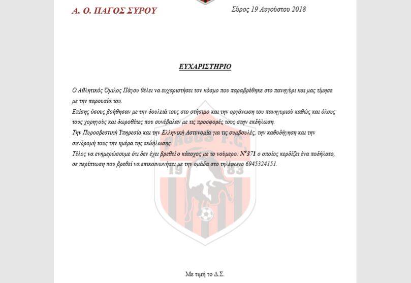 Α.Ο Πάγου: Ανακοίνωση για το πανηγύρι και ο τυχερός που… δεν έχει βρεθεί