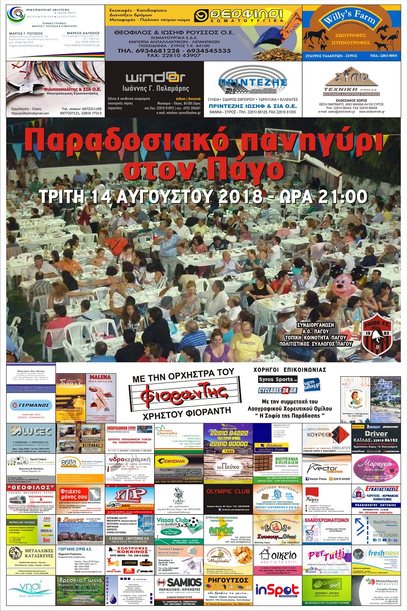 Στις 21:00 το παραδοσιακό πανηγύρι στον Πάγο με την ορχήστρα του Χρήστου Φιοράντη …