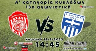Ταξίδι στη Μήλο για την Ελλάς Σύρου Για την 13η αγωνιστική του πρωταθλήματος της Α κατηγορίας της ΕΠΣ Κυκλάδων, η Ελλάς ταξιδεύει αύριο στη Μήλο όπου θα βρει αντιμέτωπο τον Παμμηλιακό (14.45). Σε ένα σίγουρα δύσκολο ταξίδι, η Ελλάς Σύρου φιλοδοξεί να κάνει ένα ακόμη βήμα για την κατάκτηση του …