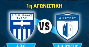 Read More »Οι διαιτητές του Ελλάς Σύρου-Α.Ο Πύργου