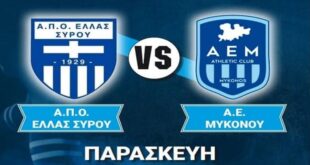 Read More »Σπουδαίο φιλικό με Α.Ε Μυκόνου η Ελλάς Σύρου