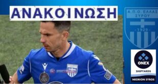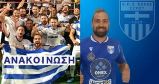 Την ανανέωση της συνεργασίας με τον φροντιστή Τάσο Μονογιό ανακοίνωσε η Ελλάς Σύρου… «Το Δ.Σ του Α.Π.Ο Ελλάς Σύρου βρίσκεται στην ευχάριστη θέση να ανακοινώσει την ανανέωση της συνεργασίας με τον φροντιστή της ομάδας Τάσο Μονογιό. Ο κ. Τάσος έχει «υπηρετήσει» για πολλά χρόνια το Συριανό ποδόσφαιρο σαν φροντιστής, κάτι …