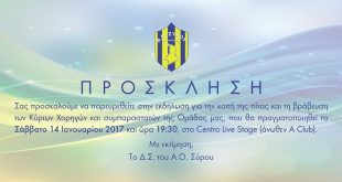 Η Διοίκηση του ΑΟ Φοίνικα Σύρου στα πλαίσια της κοινωνικής αντίληψης της, και προκειμένου να απολαύσουν τον μεγάλο αγώνα της ομάδας μας με τον περσινό πρωταθλητή ΠΑΟΚ, όσοι το δυνατόν περισσότεροι φίλαθλοι, σε σημερινή συνεδρίαση της αποφάσισε: Α. Οι πενήντα (50) πρώτοι φίλαθλοι που θα έλθουν στο γήπεδο και δεν θα …
