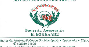 Syros-Sports: Ευχαριστώ σε Βιοτεχνία Λουκουμιών Κανακάρης Η σελίδα μας αισθάνεται την υποχρέωση να ευχαριστήσει την Βιοτεχνία Λουκουμιών Κανακάρης και ιδιαίτερα τον Κώστα Κόκκαλη (αντιπρόεδρος Α.Ο Ερμούπολης)  που βρίσκεται τα τελευταία χρόνια στο πλευρό μας. Χωρίς την στήριξη από τις επιχειρήσεις, τίποτα δεν θα ήταν εύκολο. Το Syros-Sports.gr εδώ και 9 …