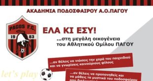 Μέσα από την προσωπική του σελίδα του Facebook, ο πρόεδρος του Α.Ο Πάγου Άκης Μανωλιός εκφράζει την ικανοποίηση του για την πρωτοβουλία της διοίκησης του Πάγου σχετικά με τις  δωρεάν ακαδημίες… Ο Πάγος πρωτοπορεί με δωρεάν ακαδημίες (ΔΙΑΒΑΣΤΕ ΕΔΩ) Αναλυτικά η ανάρτηση του προέδρου του Πάγου αναφέρει:  «Περήφανος για την …