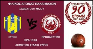 Στη Σύρο για τον Θέμη Βάγγη η Προοδευτική ΣΤΗ ΣΎΡΟ ΠΡΟΣ ΤΙΜΉΝ ΤΟΥ ΘΈΜΗ ΒΆΓΓΗ Η ΠΡΟΟΔΕΥΤΙΚΉ Στην όμορφη Σύρο θα αγωνισθεί η ομάδα βετεράνων ποδοσφαιριστών της Προοδευτικής Νεολαίας. Στο πλαίσιο των εορτασμών για τα 90 χρόνια από την ίδρυσή της, θα αντιμετωπίσει το Σάββατο (27/5) στις 18.00, την αντίστοιχη …