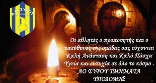 Το δικό του μήνυμα ενόψει των Άγιων Ημερών του Πάσχα στέλνει ο Γιώργος Φώσκολος. Τον Πρόεδρο του Α.Ο Σύρου «συνέλαβε» σήμερα ο φωτογραφικός φακός του Syros-Sports.gr σε γνωστή καφετέρια της Ερμούπολης, μαζί με τον προπονητή της ομάδας Γιώργο Ρούσσο (Φωτο). Φιλία;, Κουβέντες για τη νέα αγωνιστική σεζόν; Απλός καφές ενόψει …