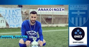Στην Ελλάς και τη νέα χρονιά ο Γιώργος Περιάλης Συνεχίζονται οι ανανεώσεις στην Ελλάς Σύρου, που κρατάει τον βασικό κορμό… και ετοιμάζεται για ενισχύσεις. Η ομάδα της Σύρου ανακοίνωσε την παραμονή στην ομάδα του Γιώργου Περιάλη. Θυμίζουμε πως η Ελλάς έχει ήδη ανακοινώσει την ανανέωση της συνεργασίας με τους Χάρη …