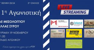 Read More »Α.Ε Μεσολογγίου-Ελλάς Σύρου Live Streaming (11.00)