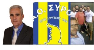 Σαγκινέτος-Μακρυωνίτης στο ψηφοδέλτιο για Α.Ο Σύρου… Μετά το Νίκο Ζιάβρα, άλλα δυο άτομα προστέθηκαν στο ψηφοδέλτιο ενόψει εκλογών για την ανάδειξη του νέου Δ.Σ του Α.Ο Σύρου. Ο Αντιδήμαρχος Διοικητικών Υπηρεσιών και δημοτικός σύμβουλος κ. Δομένικος Σαγκινέτος, έθεσε τον εαυτό του υποψήφιο για τις εκλογές της ομάδας. Ο Παλαίμαχος ποδοσφαιριστής …