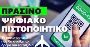 Πράσινο Ψηφιακό Πιστοποιητικό: Πώς θα «ξεκλειδώσουν» τα ταξίδια Τo ψηφιακό «έγγραφο μετακίνησης» που θα επιτρέψει και πάλι στους Ευρωπαίους να μετακινούνται με ασφάλεια σε καιρό πανδημίας, είναι εδώ. Η Ευρωπαϊκή Επιτροπή υιοθέτησε σήμερα επίσημα τη θέσπιση ενός τυποποιημένου, διαλειτουργικού και κοινώς αποδεκτού πιστοποιητικού εμβολιασμού, που θα επιτρέπει εκ νέου τα …