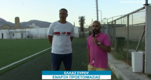 «Η ομάδα θα πρωταγωνιστήσει στο φετινό πρωτάθλημα» (Βίντεο) Στην κάμερα των συνεργαζόμενων σάιτ και στον Βαγγέλη Μαραγκό μίλησε, μετά το τέλος την πρώτης προπόνησης της ομάδας, ο τεχνικός διευθυντής της Ελλάς Σύρου, Μιχάλης Λυγνός. https://www.youtube.com/watch?v=_3UhTRYtqG4