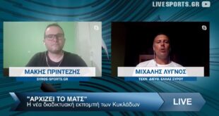 Μιχάλης Λυγνός: «Δεν θα μπούμε σε διαδικασία «πλειστηριασμού» με παίκτες (Βίντεο) Καλεσμένος της εκπομπής «Αρχίζει το ματς» και του Μάκη Πρίντεζη ήταν ο Τεχνικός Διευθυντής της Ελλάς κ. Μιχάλης Λυγνός. Σε μια συνέντευξη που κράτησε 1 ώρα και 20 λεπτά, ο σπουδαίος παλαίμαχος ποδοσφαιριστής της Σύρου μίλησε για όλα τα …