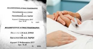 Για ακόμη μια φορά οι Κυκλαδίτες ενώνονται για έναν ιερό σκοπό. Ένα μικρό παιδί έχει ανάγκη τη βοήθεια μας. Μια Συριανή οικογένεια εδώ και αρκετό καιρό ζει μέσα σε ένα Νοσοκομείο δίπλα στο μικρό παιδί τους που αντιμετωπίζει σοβαρό πρόβλημα υγείας. Μπορούμε όλοι να βοηθήσουμε αγοράζοντας ένα εισιτήριο αξίας 1 …