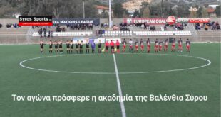 Διασκέδασαν οι 4 ακαδημίες της Σύρου με αγώνες (Βίντεο) Με την συμμετοχή 4 ακαδημιών της Σύρου διεξήχθη σήμερα στις εγκαταστάσεις του Multiaction στον Πάγο το φιλικό τουρνουά ακαδημιών για τις ηλικίες Κ8. Α.Π Σύρος 2002, Νέος Α.Ο.Σ, Βαλένθια και Ελλάς Σύρου το διασκέδασαν, με τους μικρούς Συριανούς ποδοσφαιριστές να δίνουν …