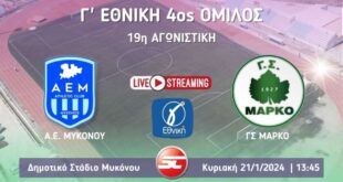 Read More »ΑΕ Μυκόνου – ΓΣ Μαρκό Live Streaming