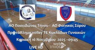 Read More »Πρωτάθλημα Γυναικών: Ποσειδώνας Τήνου-Φοίνικας Σύρου Live Streaming