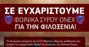 Read More »Το ευχαριστώ του Φίλιππου Βέροιας στο Φοίνικα Onex