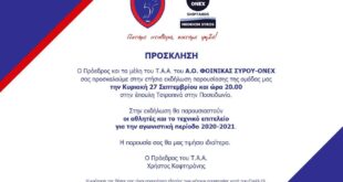 Read More »Φοίνικα Σύρου ONEX: Πρόσκληση στην εκδήλωση παρουσίασης της ομάδας