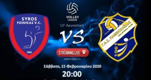 Σήμερα με Παμβοχαϊκό ο Φοίνικας Σύρου Onex (προϊστορία) Από τα παραδοσιακά ντέρμπι – ανεξάρτητα από την αγωνιστική και βαθμολογική κατάσταση που βρίσκονται οι ομάδες – είναι η αναμέτρηση μεταξύ του Φοίνικα ΟΝΕΧ και του Παμβοχαϊκού για τη 13η αγωνιστική στο πρωτάθλημα Volley League 2019-20. (Δημήτρης Βικέλας, 15/2, 20.00, Livestreaming volleyleague.gr, Διαιτητές: Φραγκάκης, …