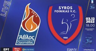 Βόλεϊ Λιγκ: Τα χθεσινά αποτελέσματα της 6ης αγωνιστικής Α.Ο.Π. Κηφισιάς – Α.Σ. Άθλος Ορεστιάδας 2-3 (25-21, 19-25, 18-25, 25-22, 14-16) Π.Α.Ο.Κ. – Α.Ο.Ν.Σ. Μίλων 3-0 (25-23, 25-18, 25-15) Παναθηναϊκός Α.Ο. – Ολυμπιακός Σ.Φ.Π. 3-2 (22-25, 24-26, 25-22, 25-22, 15-10) Κυριακή 27 Νοεμβρίου 2022 17.30: Ο.Φ.Η. – Α.Ο. Φοίνικας Σύρου ΟΝΕΧ …