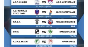 Read More »Volley League 2022-23: Το πρόγραμμα και η T.V. της 2ης αγωνιστικής
