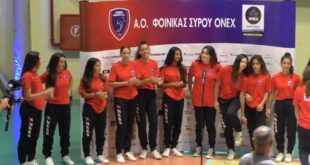 Η γιορτή του Φοίνικα Σύρου ΟΝΕΧ (Βίντεο) Μπροστά σε 500 φίλους της ομάδας που γέμισαν τις κερκίδες του Δ. Βικέλας, πραγματοποιήθηκε το Σάββατο (8/10) η επίσημη παρουσίαση της ομάδας του Φοίνικα Σύρου ΟΝΕΧ για την αγωνιστική σεζόν 2022-23.