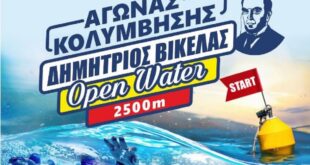 Ολοκληρώθηκε με επιτυχία το «OPEN WATER-ΔΗΜΗΤΡΙΟΣ ΒΙΚΕΛΑΣ» Το τμήμα κολύμβησης του αθλητικού σωματείου «ΑΙΑΣ ΣΥΡΟΥ» και ο Δήμος Σύρου Ερμούπολης συν διοργάνωσαν στις 22 Αυγούστου 2021 στον όρμο της Βάρης Σύρου, αγώνα κολύμβησης 2.500μ. με την επωνυμία «OPEN WATER-ΔΗΜΗΤΡΙΟΣ ΒΙΚΕΛΑΣ». Παράλληλα στην ίδια εκδήλωση έγινε και αγώνας κολύμβησης 100μ. για …