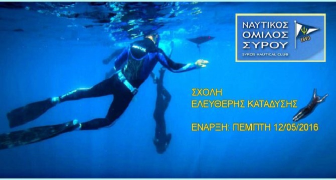 Ο Ναυτικός Όμιλος Σύρου ξεκινά αύριο στις 12 Μαΐου 2016, το «Σεμινάριο Ελεύθερης Κατάδυσης