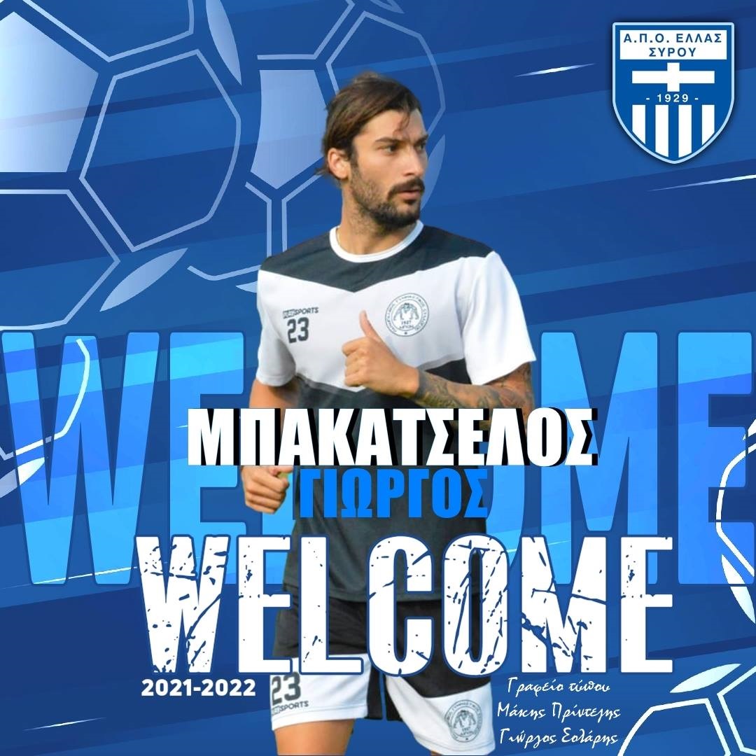 Το διοικητικό συμβούλιο του Α.Π.Ο Ελλάς βρίσκεται στην ευχάριστη θέση να ανακοινώσει την έναρξη της συνεργασίας με τον ποδοσφαιριστή Γιώργο Μπακατσέλο. Ο 28χρονος μέσος από το Αίγιο έρχεται με τις καλύτερες συστάσεις στην Σύρο και γεμάτο βιογραφικό. Μετά από 15ετή παρουσία στον Απόλλωνα Αιγίου, πέρασε και από το Διακοφτό, ενώ παράλληλα έχει υπάρξει συμπαίκτης στον Παναιγιάλειο με τον ήδη ποδοσφαιριστή μας Βασίλη Μπούνα. Τον καλωσορίζουμε στην «οικογένεια» μας.