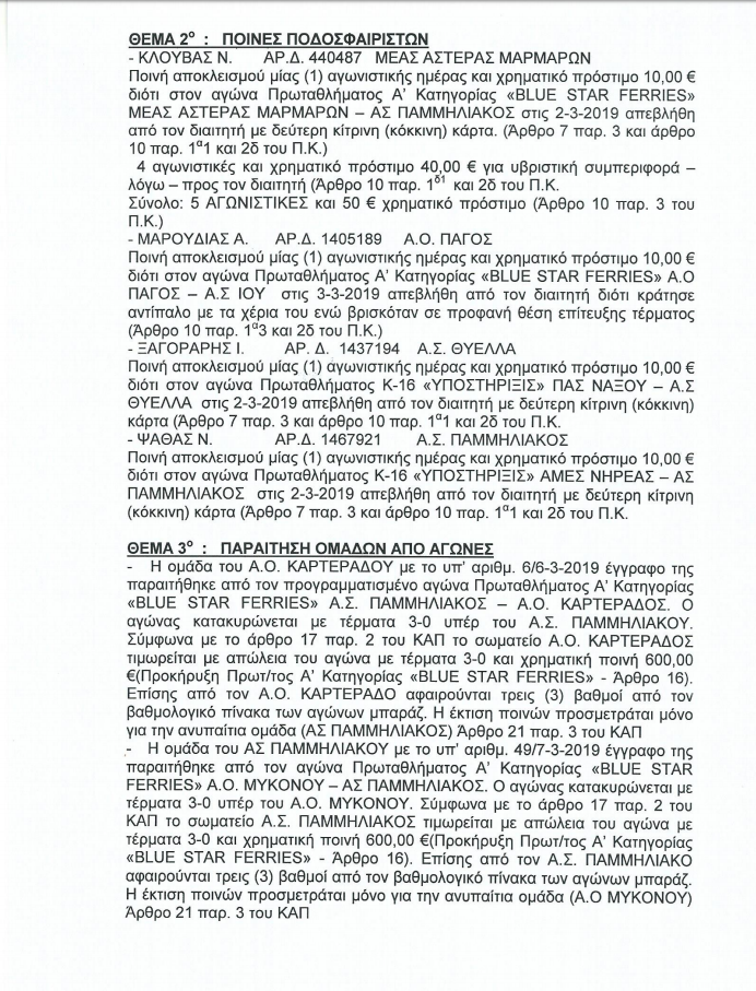 ΕΠΣ Κυκλάδων: Οι ποινές της πειθαρχικής επιτροπής…