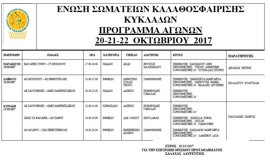 ΕΣΚΚ: Τελικό πρόγραμμα αγώνων (20-22/10)…