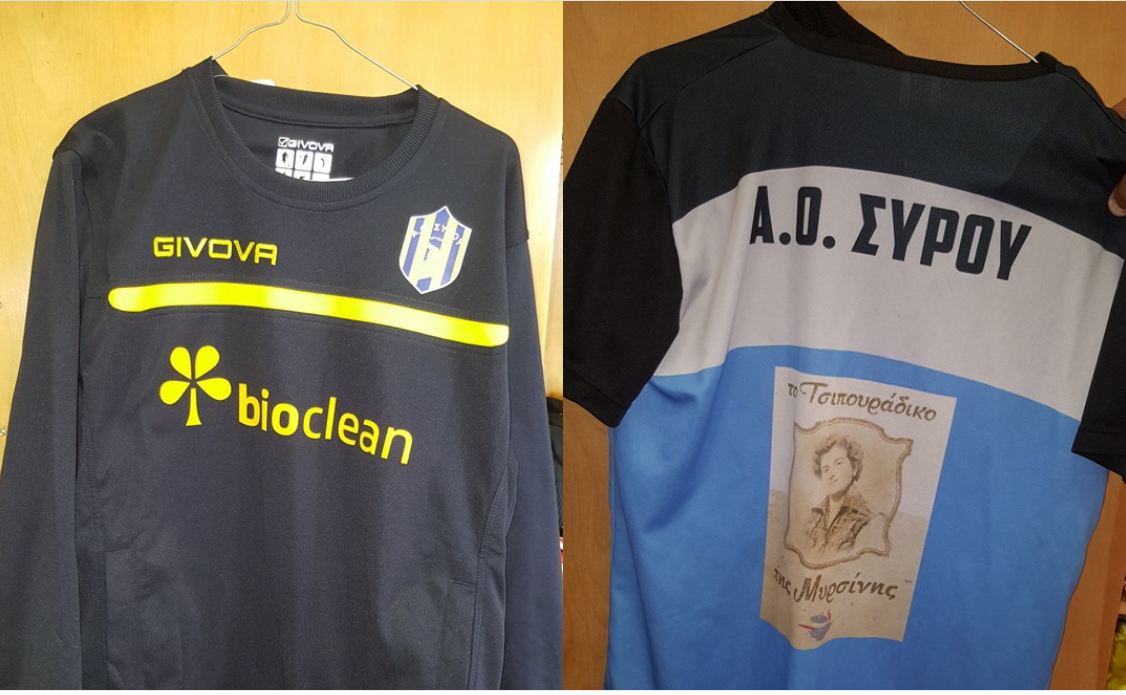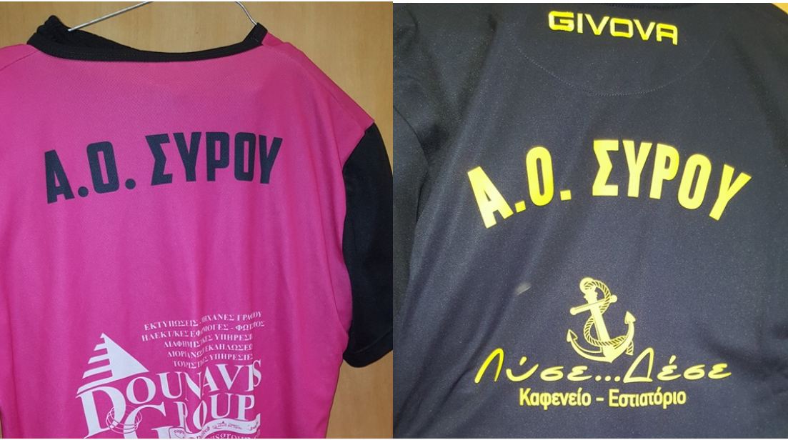 Μέσα από την επίσημη σελίδα του στο Facebook, ο Α.Ο Σύρου παρουσίασε τις φανέλες και τα προπονητικά μπλουζάκια με τους χορηγούς του για τη νέα αγωνιστική σεζόν, ενώ παράλληλα δεν παρέλειψε να ευχαριστήσει τους χορηγούς του.