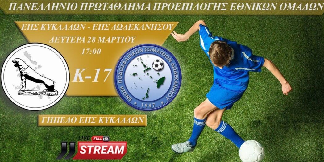 Δείτε ζωντανά στις 17.00 από το γήπεδο της ΕΠΣ Κυκλάδων τον πρώτο αγώνα της μικτής μας ομάδας με τα Δωδεκάνησα για το πρωτάθλημα προεπιλογής Εθνικών ομάδων….