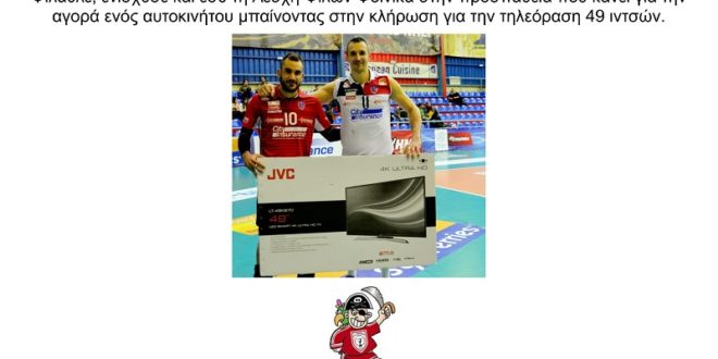 Με πρωτοβουλία της Λέσχης Φίλων του Α.Ο. Φοίνικα Σύρου διενεργείται λαχειοφόρος αγορά με σκοπό τη συλλογή χρημάτων για την αγορά ενός αυτοκινήτου που παρέχεται στους παίχτες της ομάδας μας για τις μετακινήσεις τους κατά τη διάρκεια όλης της αγωνιστικής περιόδου.