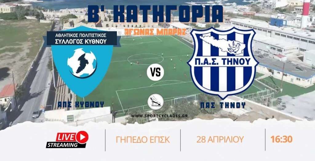 Live stream: ΑΠΣ Κύθνου – ΠΑΣ Τήνου (Β’ Κατηγορία | Αγώνας Μπαράζ)
