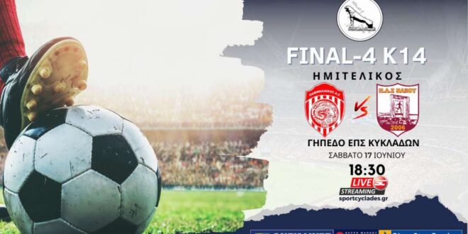 Παρακολουθήστε σε ζωντανή μετάδοση από το γήπεδο της Ερμούπολης τον ημιτελικό της Κ14 της ΕΠΣ Κυκλάδων μεταξύ του Παμμηλιακού και του ΠΑΣ Νάξου. Ο αγώνας ξεκινάει στις 18.30