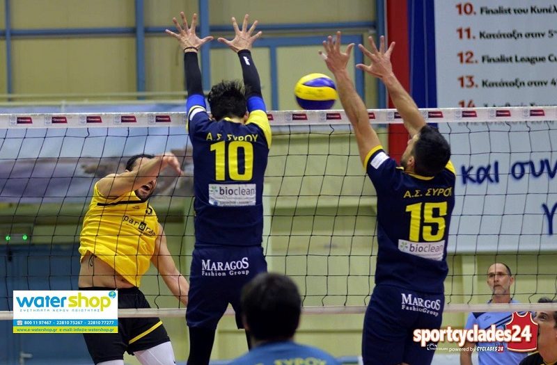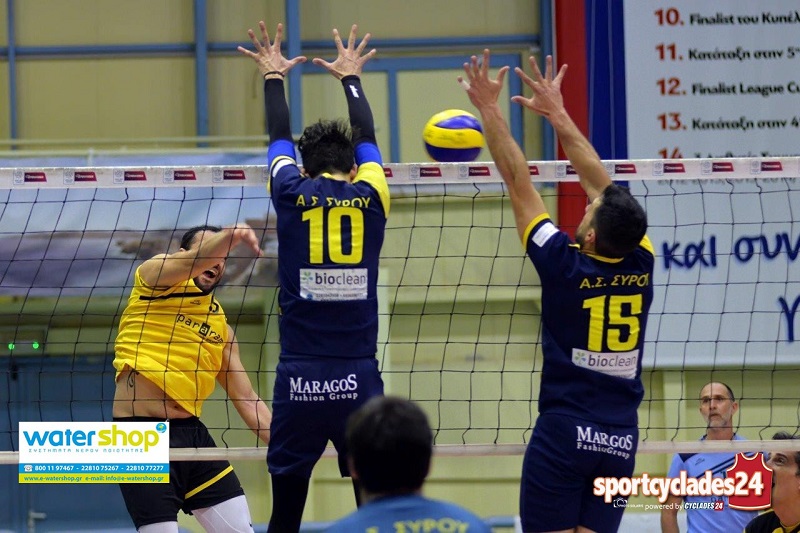Για το Πρωτάθλημα ανδρών βόλεϊ Κυκλάδων ο Α.Σ Σύρος νίκησε τον Α.Μ.Ε.Σ Νηρέας Πάρου με 3-0 σετ. Ο αγώνας διεξήχθη στην αίθουσα «Γιάννης Γουλανδρής¨ το βράδυ του Σαββάτου και ξεκίνησε αργότερα λόγω καθυστέρησης του πλοίου «Άρτεμις «. Βέβαια τα φαινόμενα αυτά είναι συνηθισμένα στα πρωταθλήματα των Κυκλάδων όλων των αθλημάτων όπως και το αυξημένο κόστος που επωμίζονται οι γονείς και παράγοντες των ομάδων μας σε εισιτήρια και διανυκτερεύσεις για να απολαμβάνουν τα παιδιά τα ίδια δικαιώματα στον αθλητισμό με τα παιδιά της υπόλοιπης Ελλάδας.