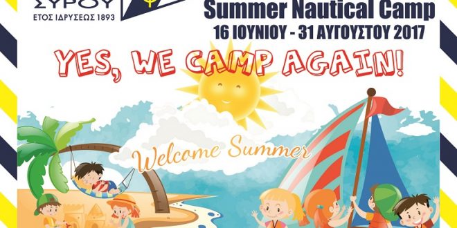 Σας ενημερώνουμε ότι οι Εγγραφές για το 12ο Αθλητικό Καλοκαιρινό Camp του Ναυτικού Ομίλου Σύρου ΞΕΚΙΚΟΥΝ την Δευτέρα 5 Ιούνη 2017 & ώρες 11:00 – 14:00 στα γραφεία του Ν.Ο. Σύρου.