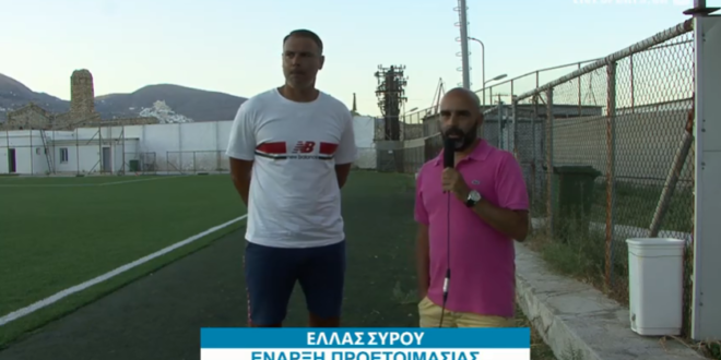 Στην κάμερα των συνεργαζόμενων σάιτ και στον Βαγγέλη Μαραγκό μίλησε, μετά το τέλος την πρώτης προπόνησης της ομάδας, ο τεχνικός διευθυντής της Ελλάς Σύρου, Μιχάλης Λυγνός.