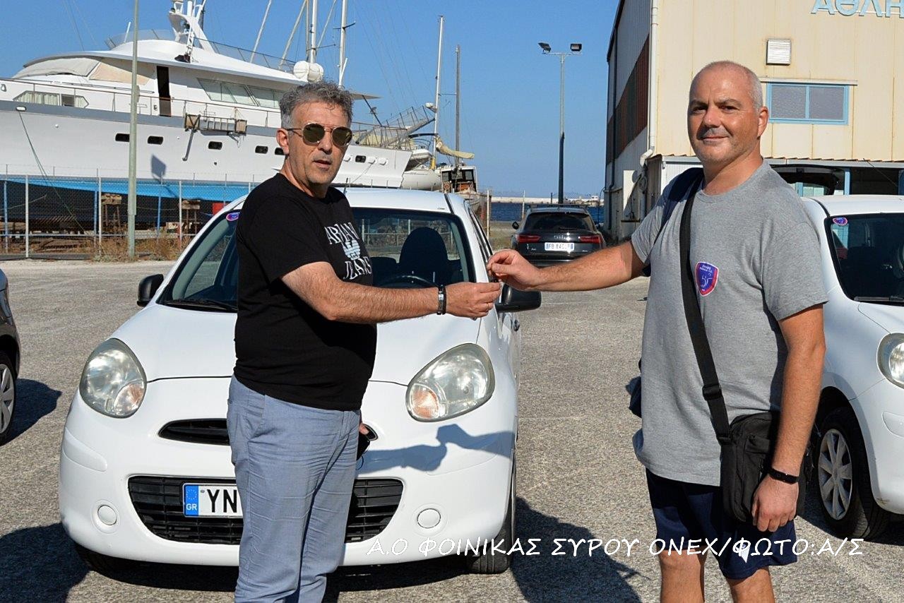 Πολύ μεγάλη οργάνωση σε όλα τα επίπεδα από την διοίκηση του Φοίνικα Σύρου ONEX,  με τους αθλητές να μη τους λείπει πλέον τίποτα. Σήμερα το απόγευμα, λίγο πριν από την προπόνηση της ομάδας, ο πρόεδρος του ΤΑΑ κ. Χρήστος Καφτηράνης παρέδωσε τα κλειδιά των αυτοκινήτων που δόθηκαν στους αθλητές.