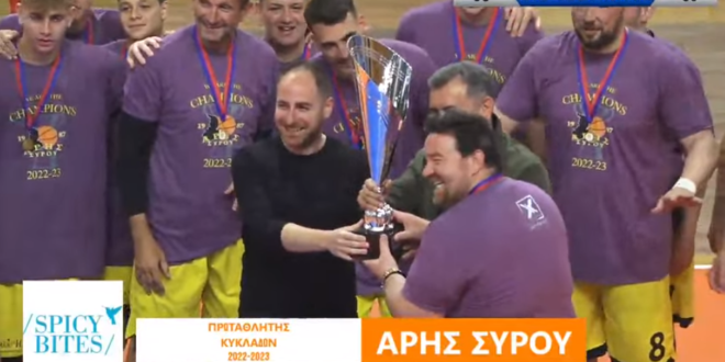 Στην κορυφή του Κυκλαδίτικου μπάσκετ ανέβηκε ο Άρης Σύρου, καθώς στον τελικό του Final-4 της Σαντορίνης επικράτησε εύκολα 96-60 της Α.Ε Σαντορίνης κατακτώντας δίκαια το πρωτάθλημα. Ναι, μια ομάδα που δεν είχε φέτος δική της έδρα και με προπονήσεις σε ανοιχτό γυμναστήριο, κατάφερε να ανέβει στο ψηλότερο σκαλοπάτι του Νομού Κυκλάδων. Πλέον ο Άρης Σύρου μέσα από τα μπαράζ θα διεκδικήσει την άνοδο στην Γ Εθνική κατηγορία.