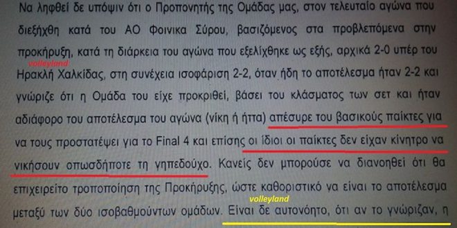 Δείτε Το έγγραφο προσφυγής του Ηρακλή Χαλκίδας στο Volleyland.gr ΕΔΩ