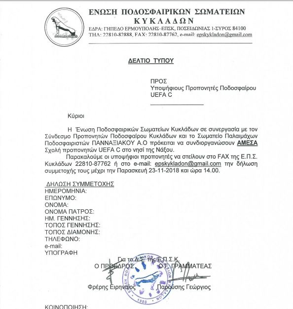 Δείτε παρακάτω την ανακοίνωση της ΕΠΣ Κυκλάδων.