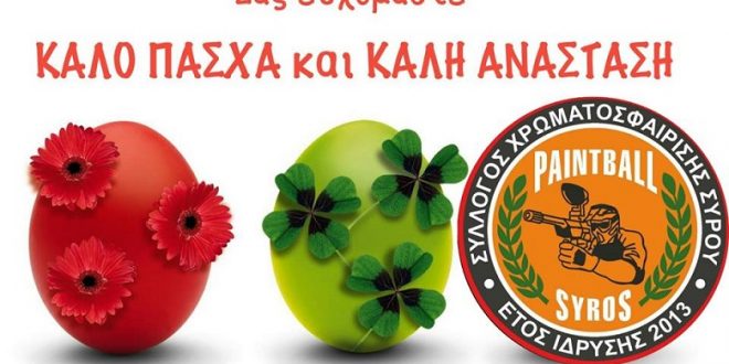 Ο Paintball Syros – Σύλλογος Χρωματοσφαίρισης Σύρου , σας εύχεται καλή Ανάσταση και καλό Πάσχα , χρόνια πολλά με υγεία!