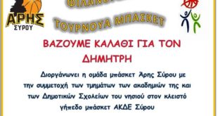Ο Άρης Σύρου και τα Δημοτικά Σχολεία ενώνουν τις δυνάμεις τους για τον Δημήτρη! Οι ακαδημίες του Άρη Σύρου και οι μαθητές των Δημοτικών Σχολείων του νησιού ενώνουν τις δυνάμεις τους για να στηρίξουν τον Δημήτρη! Το προσεχές Σάββατο 28 Απριλίου στις 17:30, στο κλειστό γυμναστήριο μπάσκετ, θα πραγματοποιηθεί φιλανθρωπική …