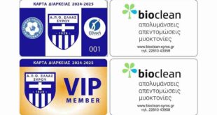 Ελλάς Σύρου: Πάρε θέση στην κερκίδα… Την διάθεση προς το κοινό των καρτών διαρκείας της αγωνιστικής περιόδου 2024-2025 ανακοίνωσε η Ελλάς Σύρου κάνοντας ξεκάθαρο άνοιγμα στον κόσμο για στήριξη δυναμική επιστροφή στις εξέδρες! Η ανακοίνωση, αναφέρει: Σε κυκλοφορία τίθενται οι κάρτες διαρκείας για την αγωνιστική περίοδο 2024/25, όπου θα μπορείτε …